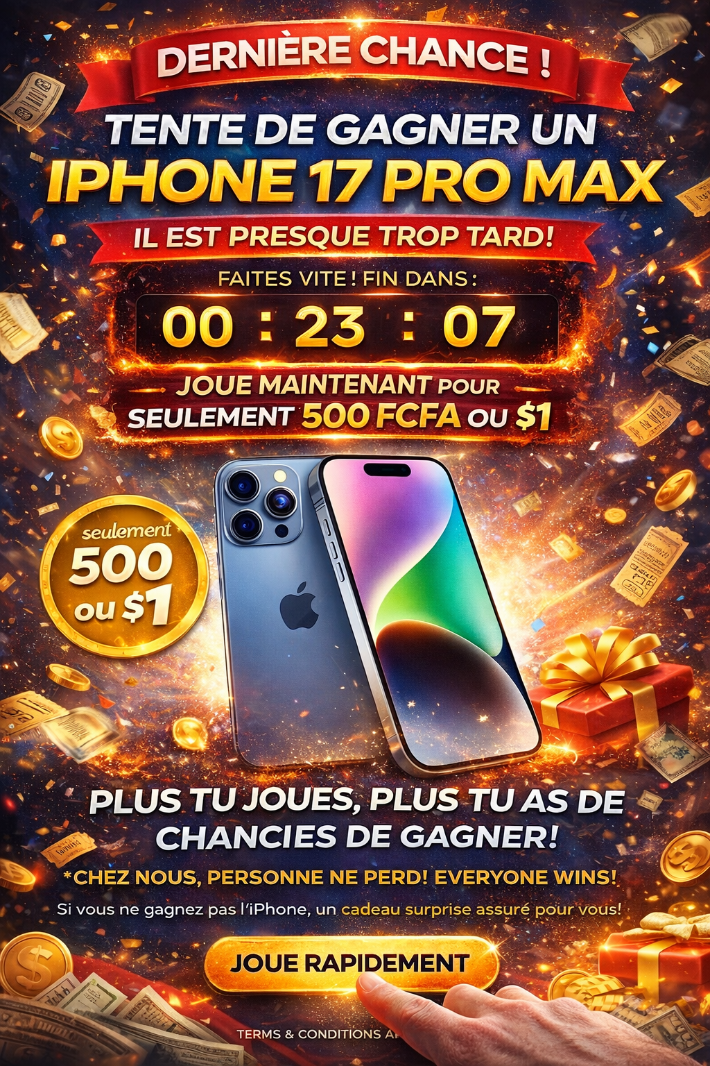 Si vous ne gagnez pas l’iPhone 17 Pro Max, vous recevez automatiquement un cadeau surprise.